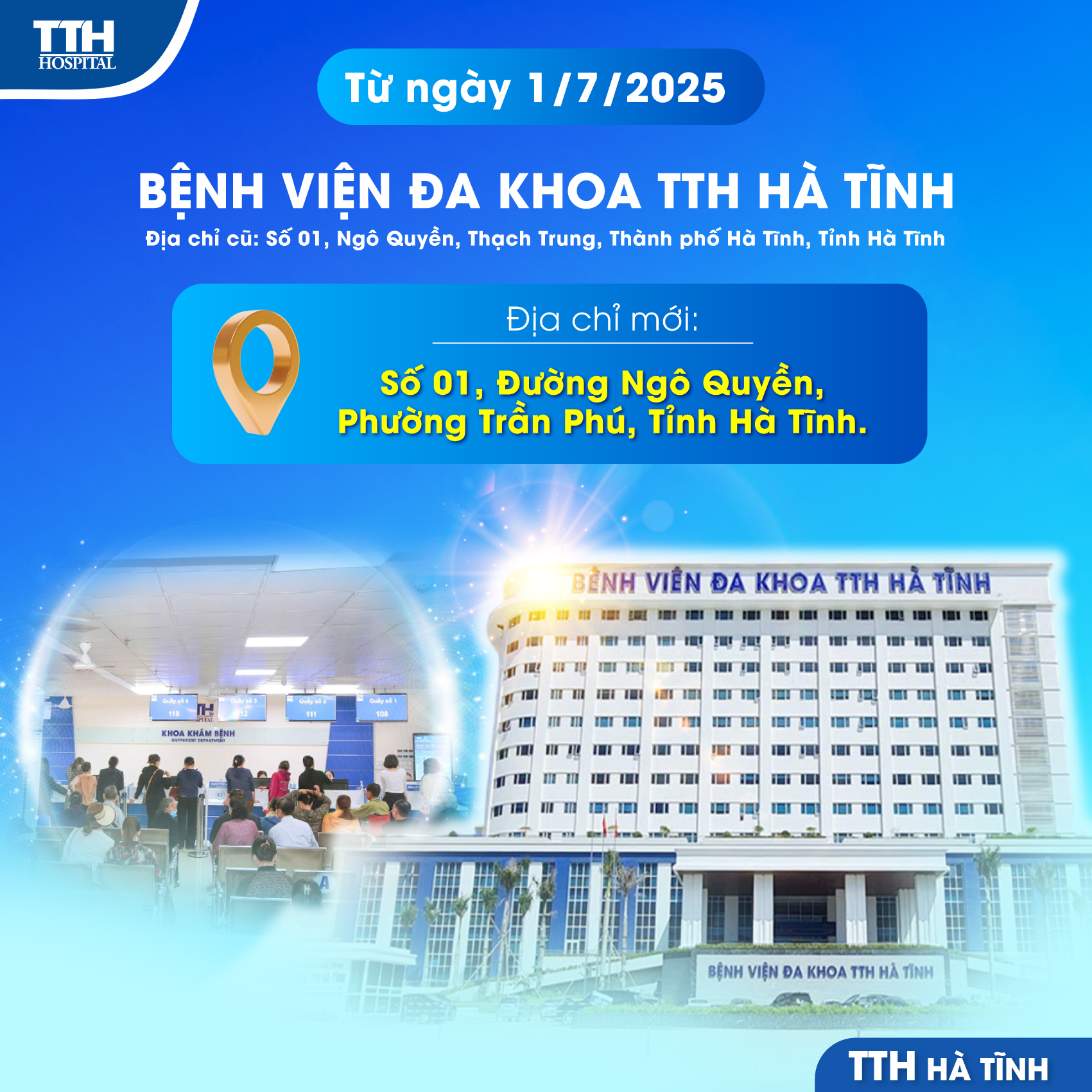 📣 Từ ngày 01/07/2025, Bệnh viện Đa khoa TTH Hà Tĩnh chính thức thay đổi địa chỉ hành chính như sau: