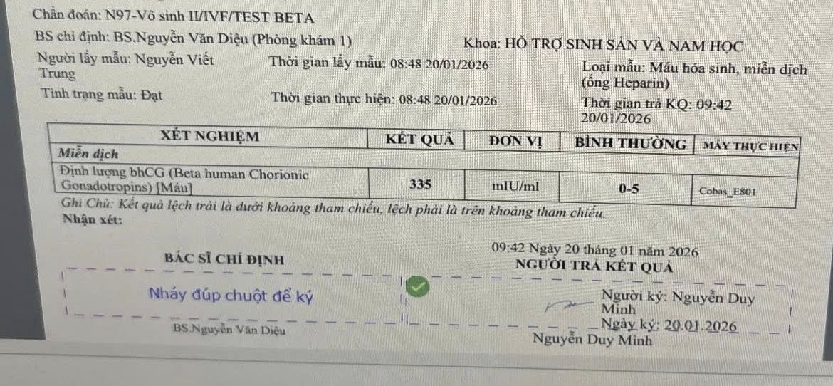 Có những giọt nước mắt đã rơi suốt hành trình dài mong con, để rồi hôm nay vỡ òa hạnh phúc khi chỉ số beta báo tin vui. Những phôi thai đỏ rực không chỉ là kết quả của y học, mà còn là trái ngọt của sự kiên trì, yêu thương và niềm tin chưa từng buông bỏ.