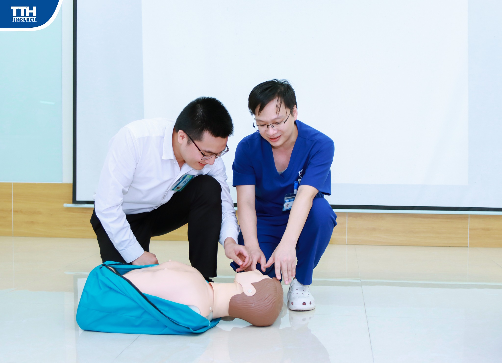 👉 Với tinh thần đó, chiều ngày 27/6/2025, Bệnh viện Đa khoa TTH Hà Tĩnh đã tổ chức buổi đào tạo kỹ năng “Cấp cứu ngừng tuần hoàn cơ bản” dành cho cán bộ nhân viên khối chức năng.
