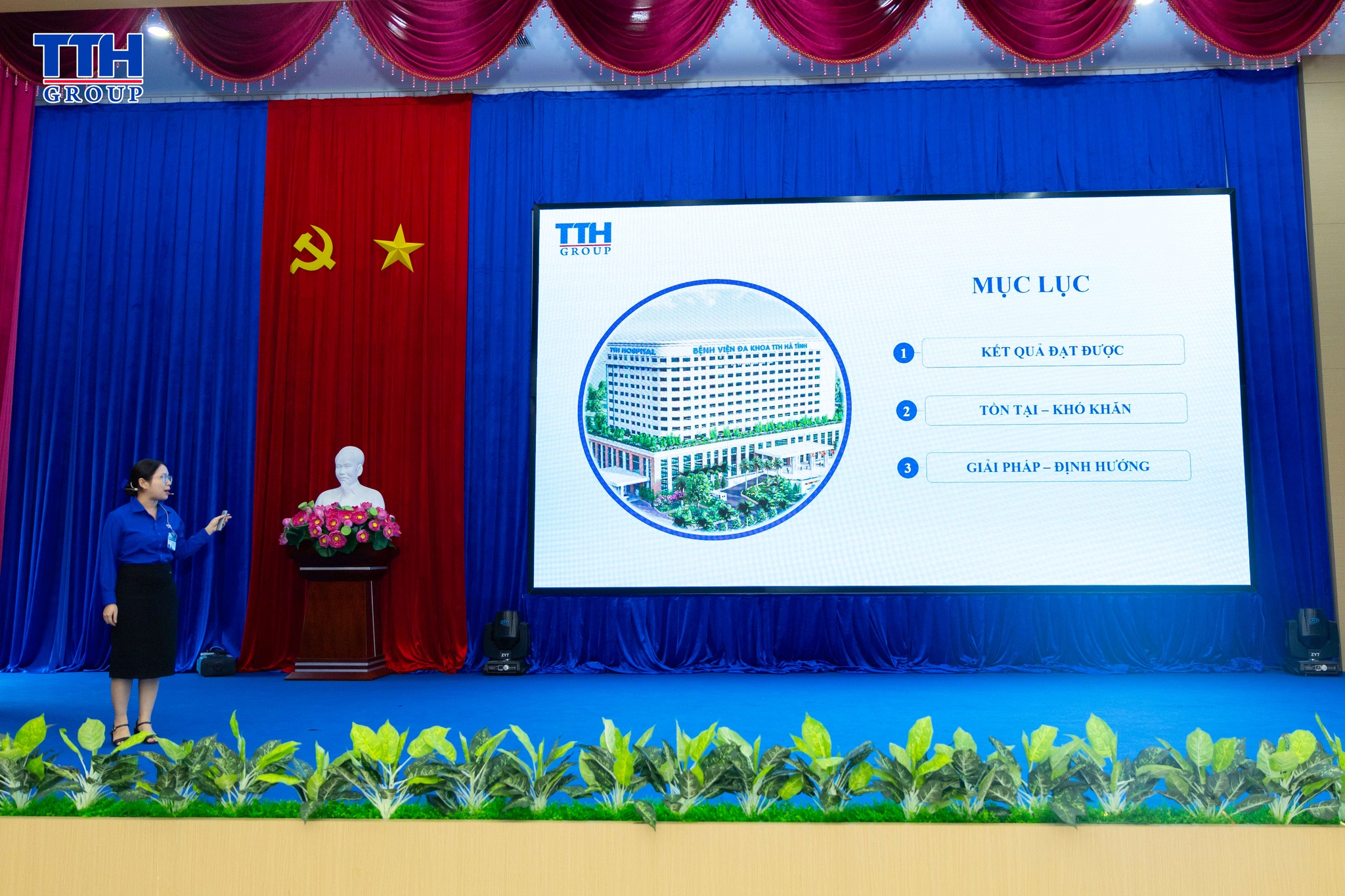 📌  Đặc biệt, trong phần chia sẻ mô hình, giải pháp hiệu quả, đại diện Chi nhánh BV Đa khoa TTH Vinh đã có phần trình bày nội dung giải pháp thực tiễn đang được áp dụng hiệu quả tại đơn vị. Đây là những sáng kiến có tính ứng dụng cao, góp phần nâng cao hiệu quả hoạt động chuyên môn và quản lý, được đánh giá là có thể lan tỏa và nhân rộng trong toàn hệ thống TTH Group.