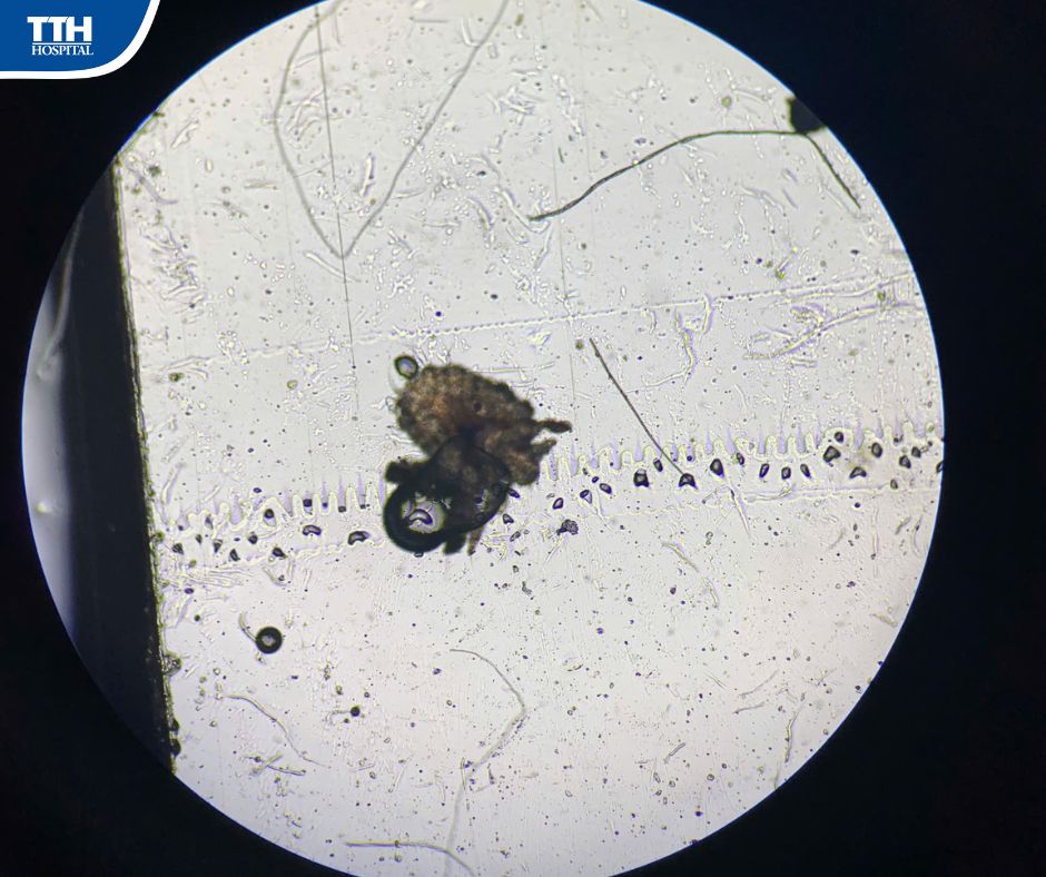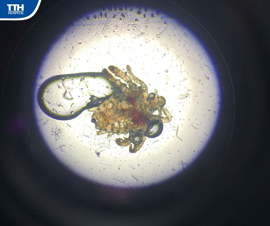 💚 Bé N.P.A (2 tuổi, trú tại xã Hà Linh, tỉnh Hà Tĩnh) được đưa đến Bệnh viện Đa khoa TTH Hà Tĩnh trong tình trạng mí mắt sưng đỏ, ngứa dữ dội, liên tục dụi mắt. Quan sát kỹ dưới kính hiển vi, các bác sĩ phát hiện nhiều chấm nhỏ li ti bám quanh chân lông mi - đó chính là rận mi mắt.
