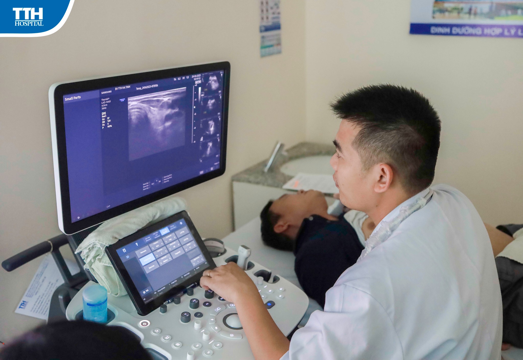 Bệnh nhân Đ.T.H 45 tuổi, trú tại Kỳ Anh, Hà Tĩnh và bệnh nhân P.T.H 38 tuổi, trú tại Hương Sơn, Hà Tĩnh đến Bệnh viện Đa khoa TTH Hà Tĩnh khám sức khỏe không có triệu chứng gì. Tại đây, bệnh nhân được bác sĩ Trinh thực hiện siêu âm tuyến giáp và tình cờ phát hiện nhân nhỏ tuyến giáp kích thước khoảng 0,7x0,5cm, nhân rất giảm âm, trục dọc, bờ không đều, có nốt vi vôi hóa, xếp loại TIRADS V, kết quả sinh thiết “ung thư tuyến giáp”. Sau đó, bệnh nhân đã được điều trị kịp thời, ngăn chặn bệnh tình chuyển biến phức tạp hiệu quả nhờ tầm soát phát hiện sớm.