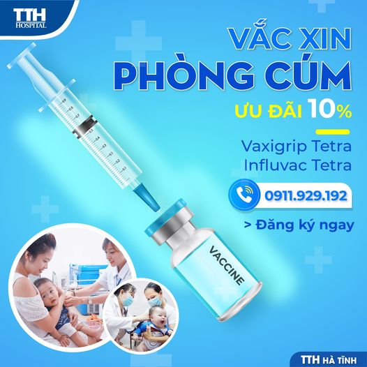 Trung tâm Tiêm chủng – Bệnh viện Đa khoa TTH Hà Tĩnh đang có chương trình ưu đãi đặc biệt giảm 10% cho vắc xin phòng cúm: