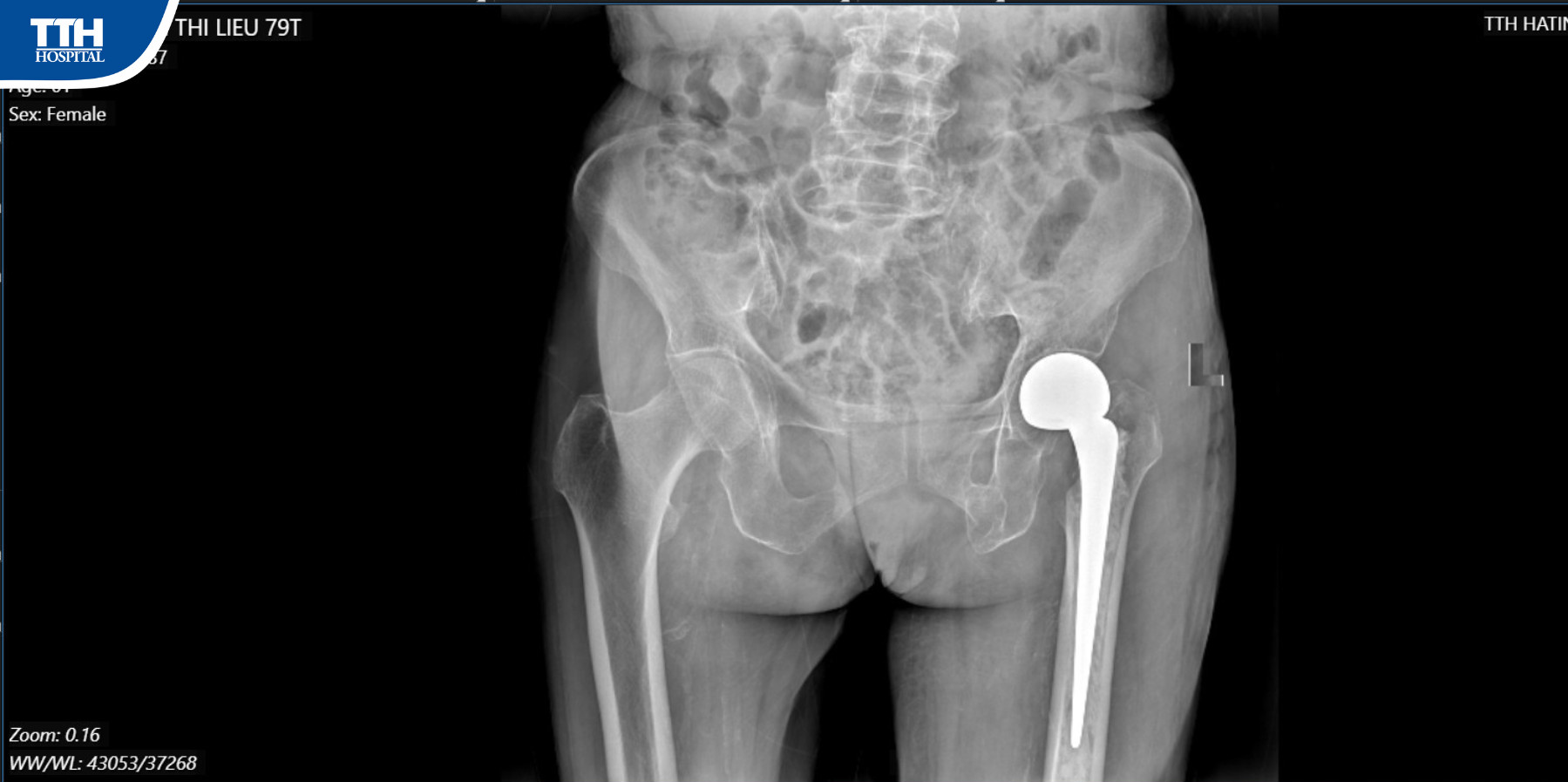 Sau khi thăm khám và làm các xét nghiệm cận lâm sàng, kết quả chụp MRI cho thấy bệnh nhân bị gãy liên mấu chuyển xương đùi trái cần phẫu thuật thay khớp háng nhân tạo.