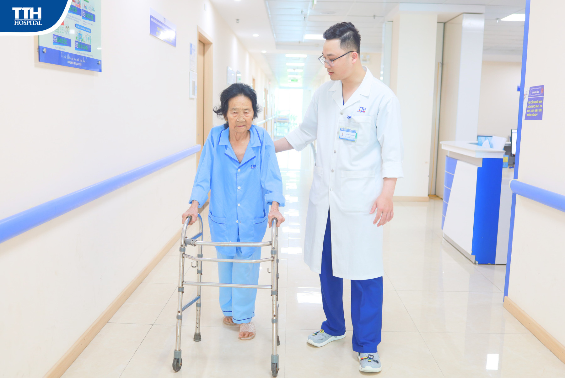 Sau 4 ngày phẫu thuật bệnh nhân đã đi lại được, tỉnh táo, ăn uống bình thường, bớt đau nhức và đã được các Bác sĩ hướng dẫn tập phục hồi chức năng.