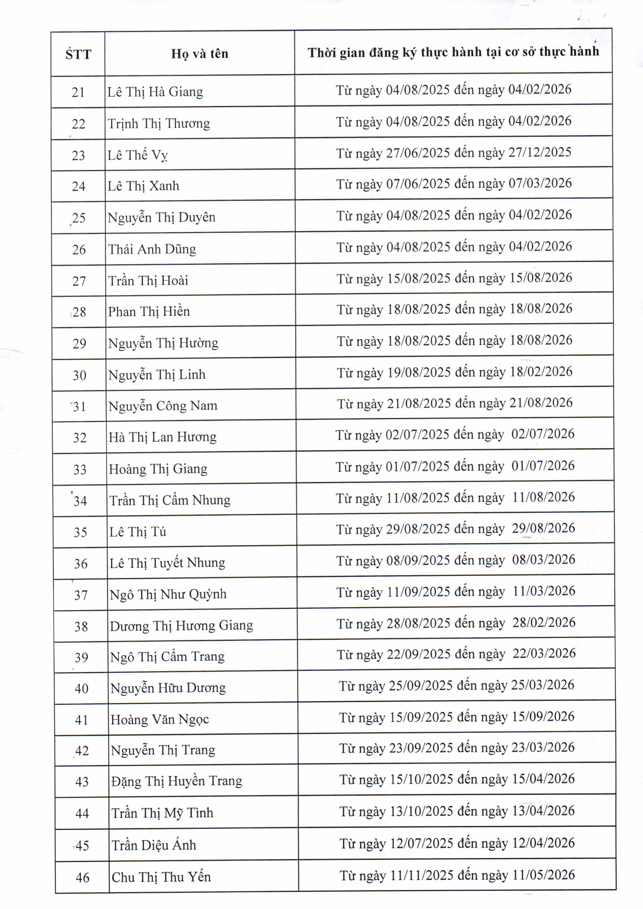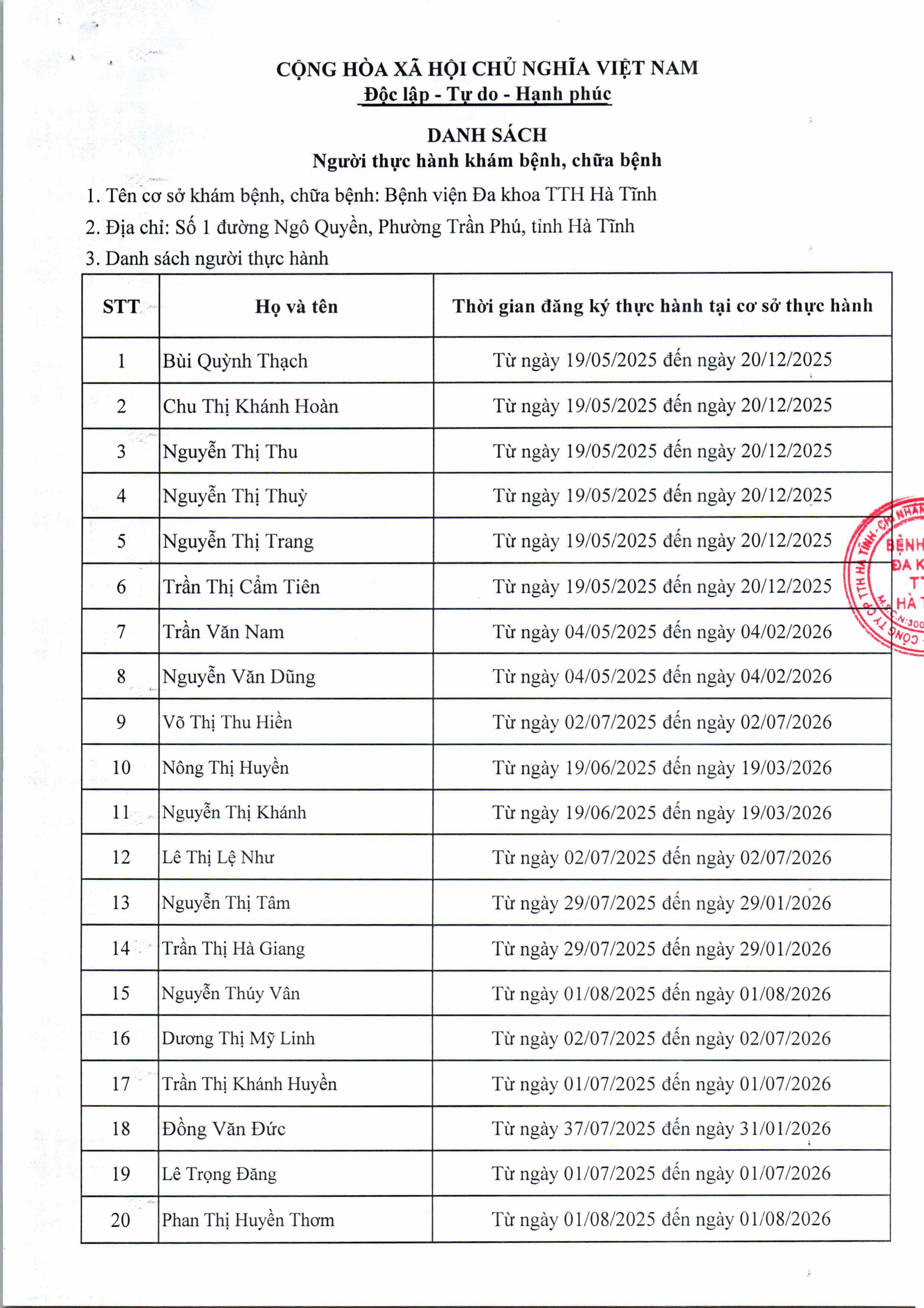 Danh sách đăng ký tăng người thực hành tại cơ sở khám bệnh, chữa bệnh tính đến ngày 07/03