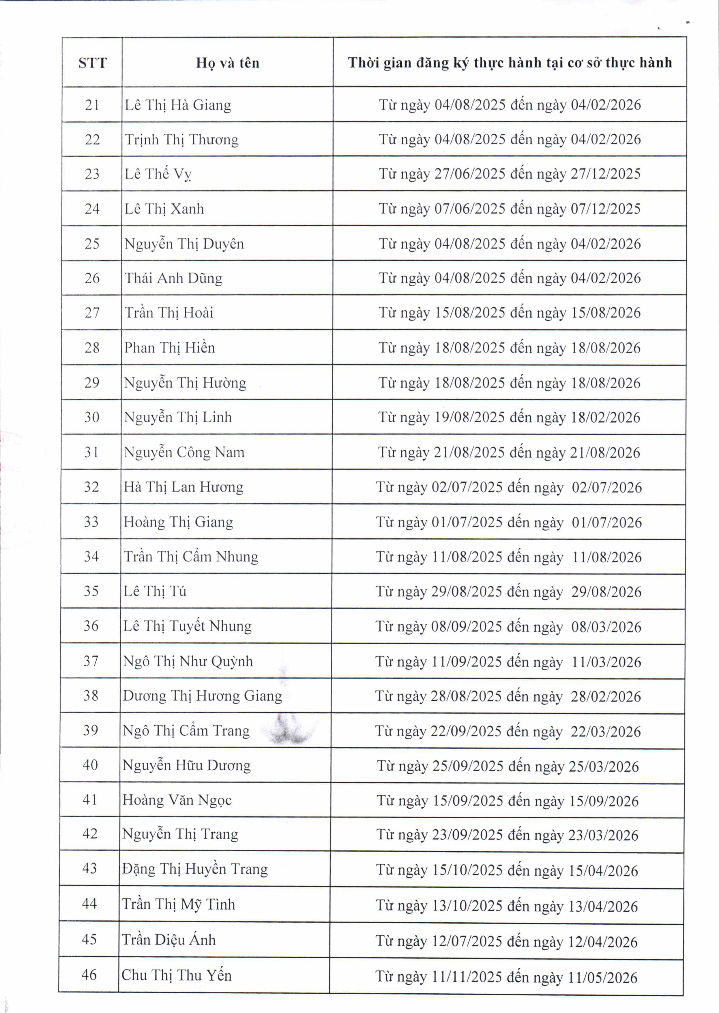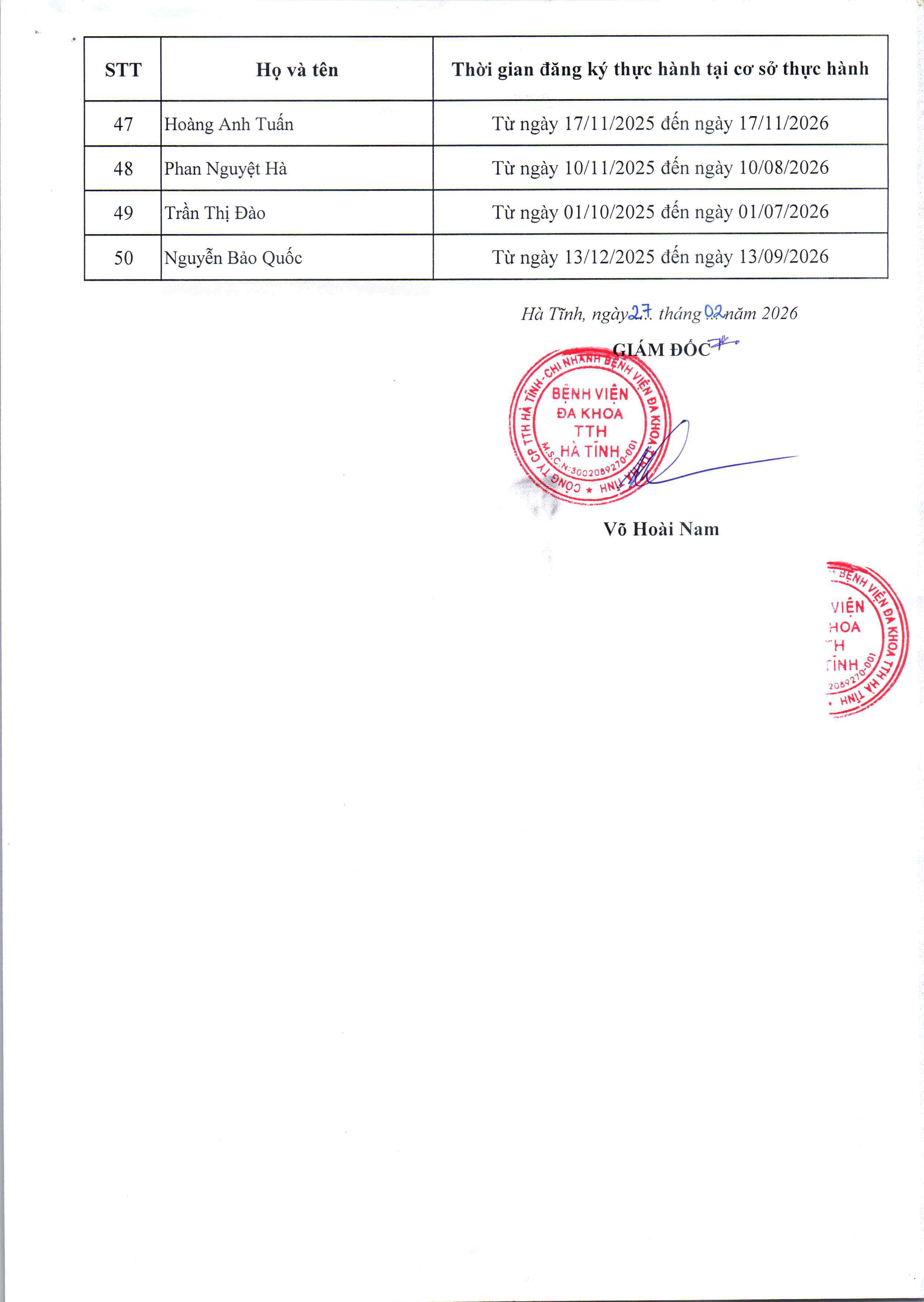 Danh sách đăng ký tăng người thực hành tại cơ sở khám bệnh, chữa bệnh tính đến ngày 28/2