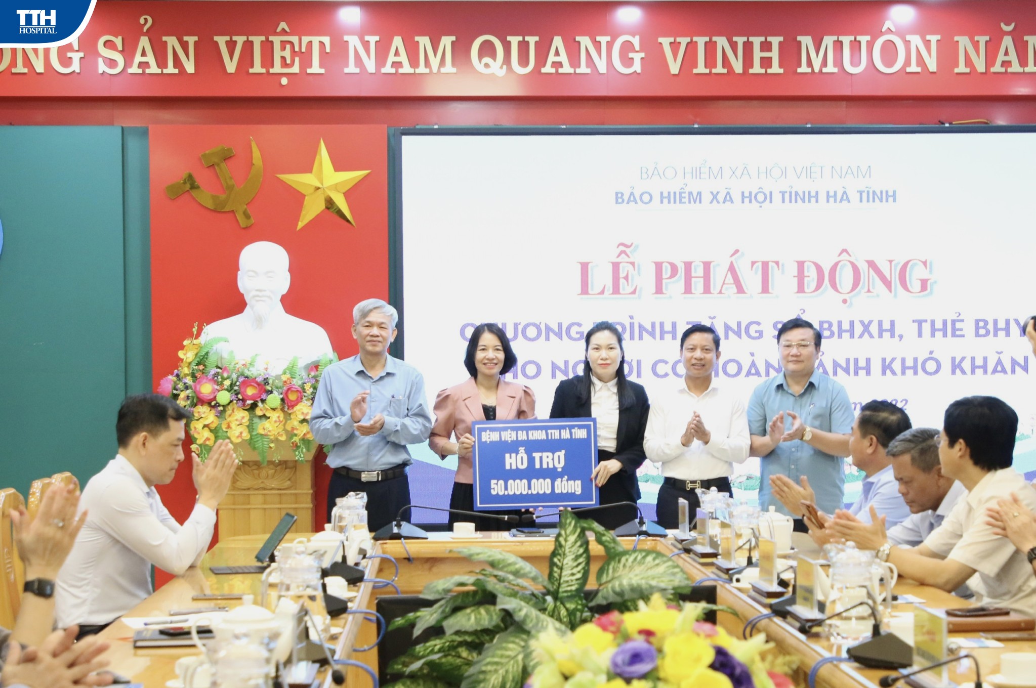 Sáng ngày 23/11/2022, tại Bảo hiểm xã hội tỉnh Hà Tĩnh, Bệnh viện Đa khoa TTH Hà Tĩnh đã hỗ trợ đã hỗ trợ 50.000.000 VNĐ trong chương trình tặng sổ BHXH, thẻ BHYT có người có hoàn cảnh khó khăn.