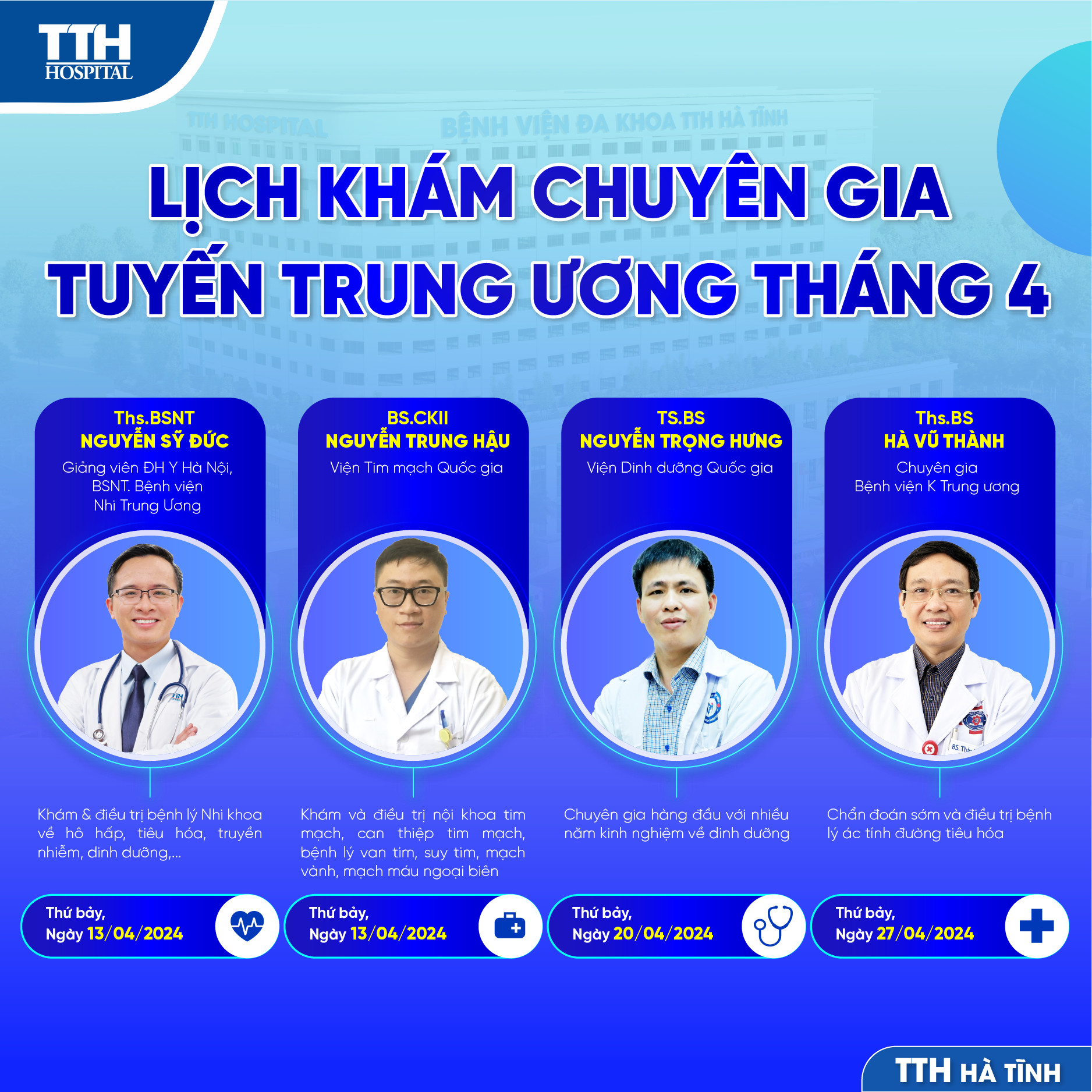 ĐỪNG BỎ LỠ LỊCH KHÁM CHUYÊN GIA THÁNG 4 TẠI BVĐK TTH HÀ TĨNH