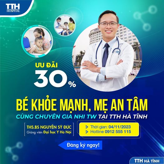 Ngày 04/11/2023, Bệnh viện Đa khoa TTH Hà Tĩnh tổ chức chương trình “Bé khỏe mạnh, mẹ an tâm cùng Chuyên gia Nhi TW - Ưu đãi 30%”, đồng hành chăm sóc sức khỏe của bé, cha mẹ an tâm phần nào.