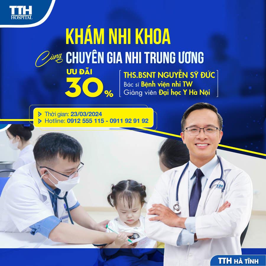 KHÁM NHI KHOA CÙNG CHUYÊN GIA BỆNH VIỆN NHI TW THS.BSNT NGUYỄN SỸ ĐỨC TẠI TTH HÀ TĨNH - ƯU ĐÃI 30%
