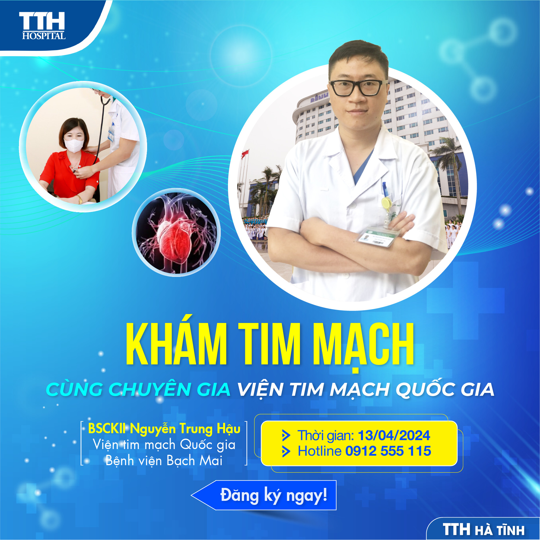 Thấu hiểu được điều này, Thứ 7, ngày 13/04/2024, Bệnh viện Đa khoa TTH Hà Tĩnh tổ chức chương trình Khám tim mạch cùng Chuyên gia Viện Tim mạch Quốc gia, Bệnh viện Bạch Mai.