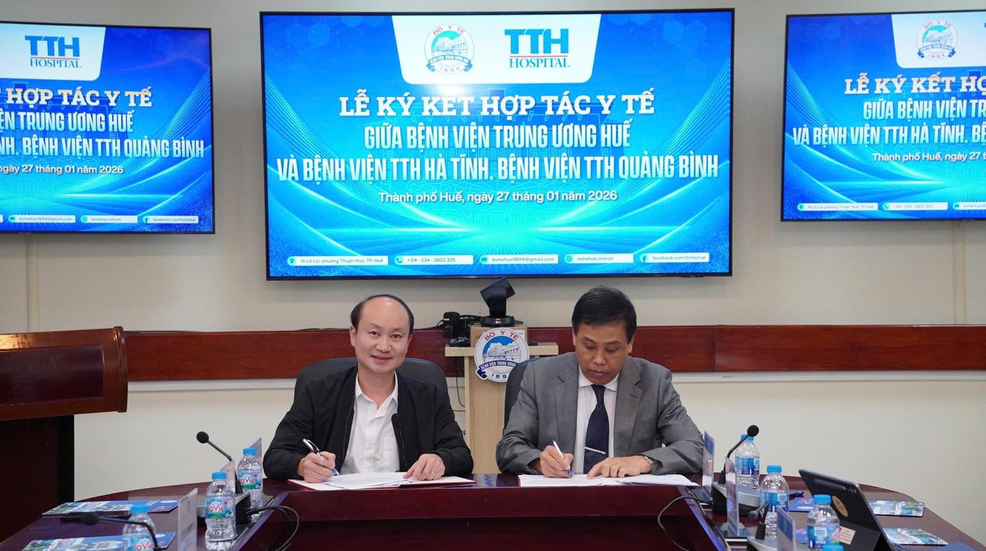 Vừa qua, Bệnh viện Đa khoa TTH Hà Tĩnh đã phối hợp cùng Bệnh viện Trung ương Huế long trọng tổ chức Lễ ký kết hợp tác hỗ trợ chuyên môn và chuyển giao kỹ thuật. Sự kiện đánh dấu bước tiến quan trọng trong chiến lược nâng cao chất lượng khám chữa bệnh, từng bước đưa các kỹ thuật y khoa chuyên sâu về phục vụ người dân Hà Tĩnh ngay tại địa phương.