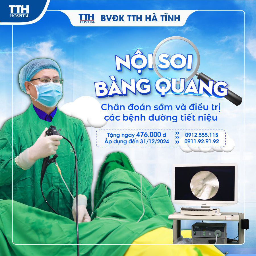 Tặng tiền mặt 476.000(VNĐ) khi khách hàng đăng ký dịch vụ kỹ thuật “Nội soi bàng quang” tại Bệnh viện Đa khoa TTH Hà Tĩnh.