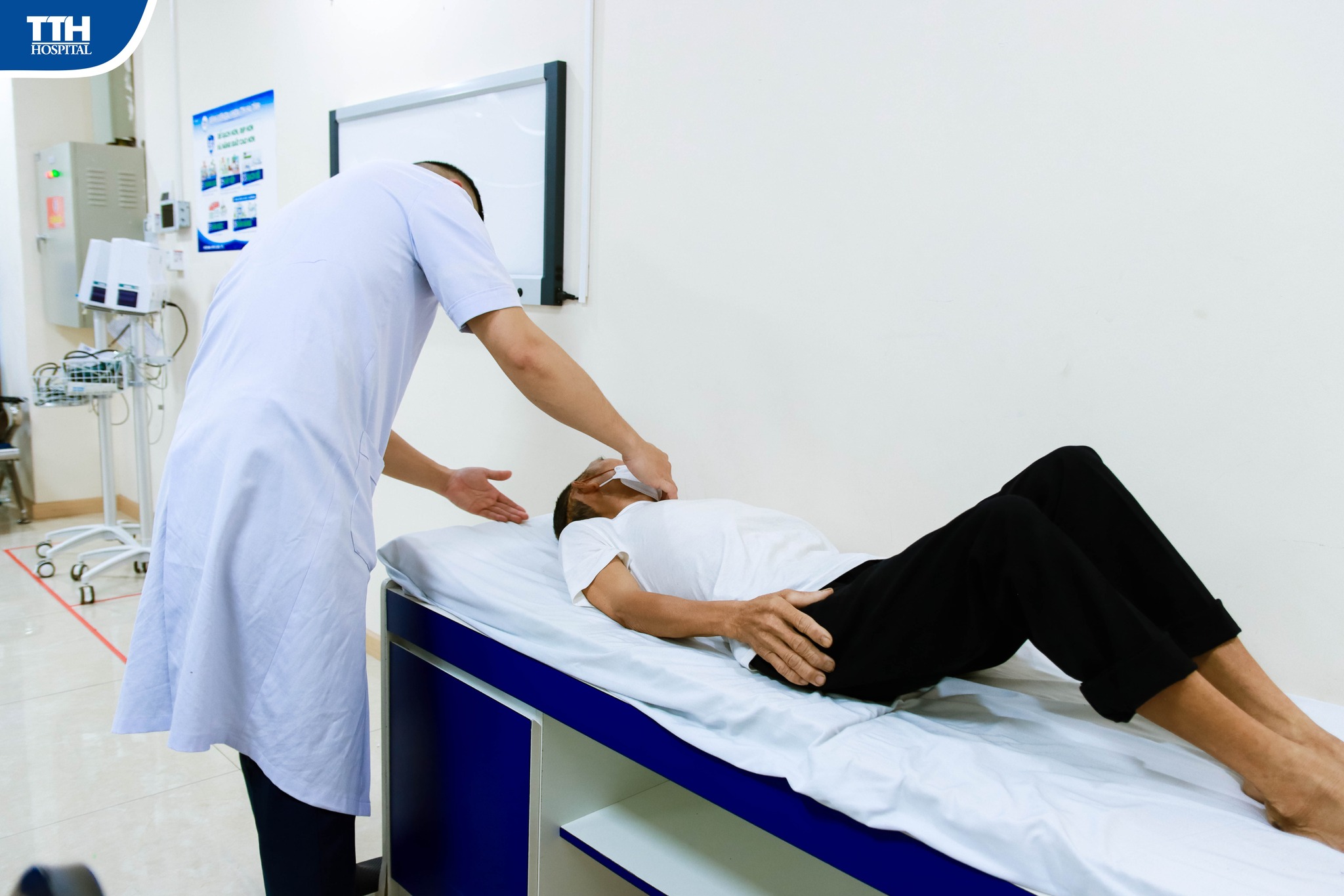 Ngay sau khi tiếp nhận bệnh nhân các Bác sĩ khoa CT - YHTT phối hợp với khoa HSCC - TNT, khoa Gây mê hồi sức nhận định: ''Đây là trường hợp rất nguy kịch cần cấp cứu tối khẩn cấp, bệnh nhân V xuất huyết nặng nề, chảy máu nhiều chèn ép nhu mô não, có nguy cơ gây tụt kẹt não cần phải có phương án xử trí để giải quyết được tổn thương tối ưu nhất''.