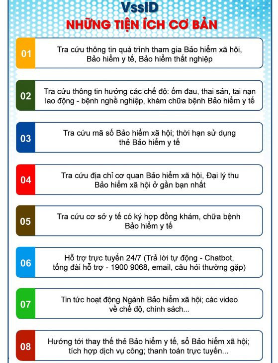 Với nhiều đặc điểm nổi bật như: dễ dàng tra cứu các thông tin, mã số bảo hiểm xã hội (BHXH).....Dưới đây là những tiện ích cơ bản khi cài đặt và sử dụng ứng dụng VSSID.