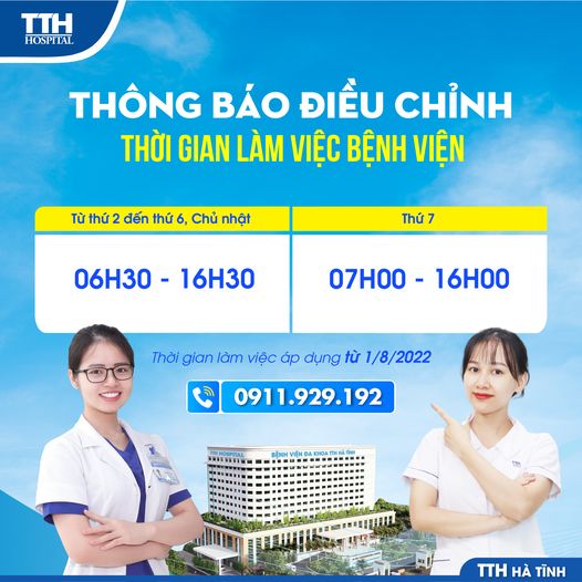 BỆNH VIỆN ĐA KHOA TTH HÀ TĨNH THÔNG BÁO ĐIỀU CHỈNH GIỜ KHÁM CHỮA BỆNH