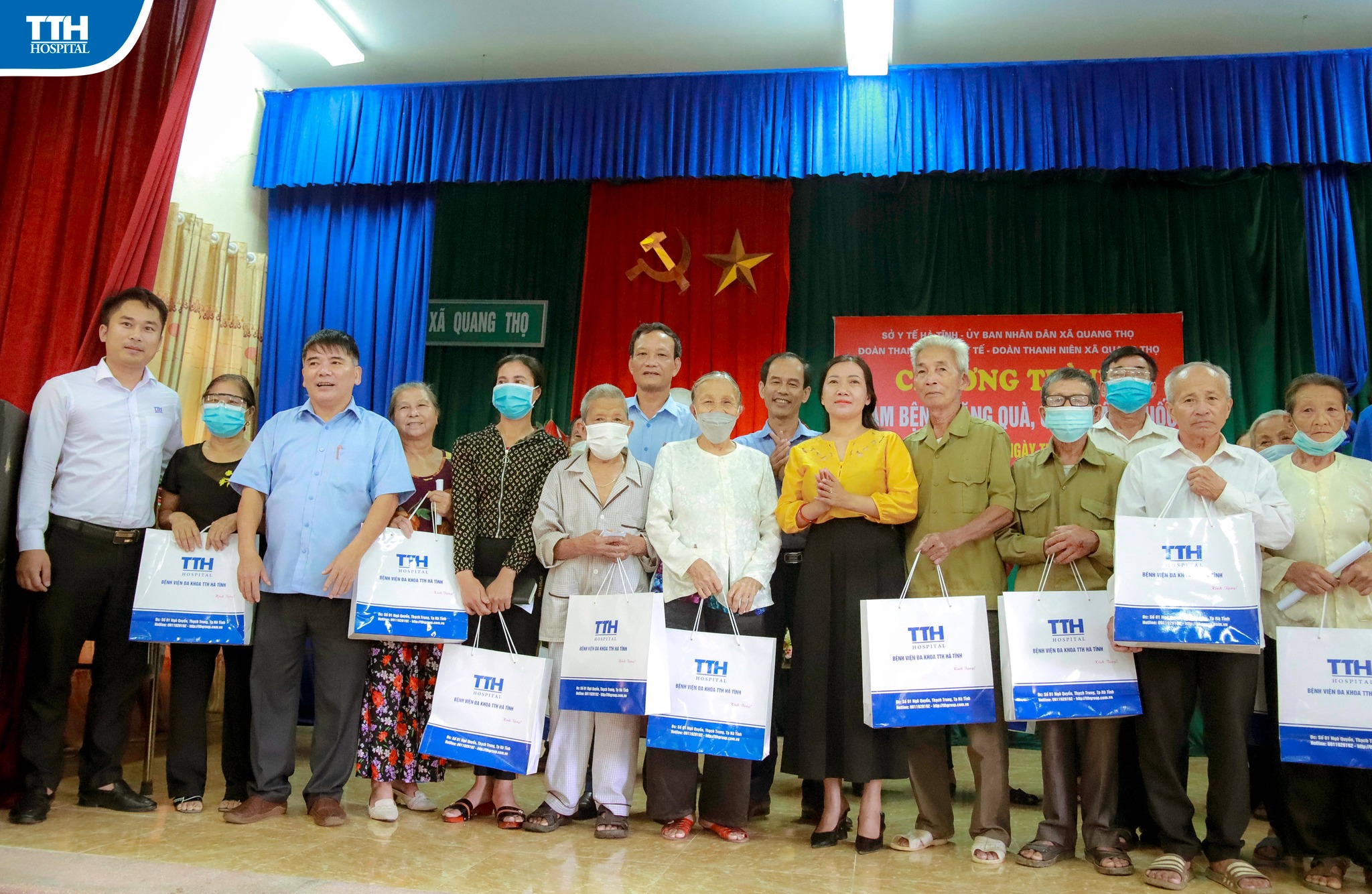 Đồng hành cùng chương trình khám bệnh, tặng quà, cấp phát thuốc của Sở Y Tế, Đoàn Thanh Niên Sở Y Tế phối hợp với UBND X.Quang Thọ, H.Vũ Quang. Sáng ngày 30/07/2022, Bệnh viện Đa khoa TTH Hà Tĩnh đã trao 30 suất quà trị giá 15 triệu đồng cho các trường hợp thuộc gia đình chính sách, người có hoàn cảnh khó khăn trên địa bàn.