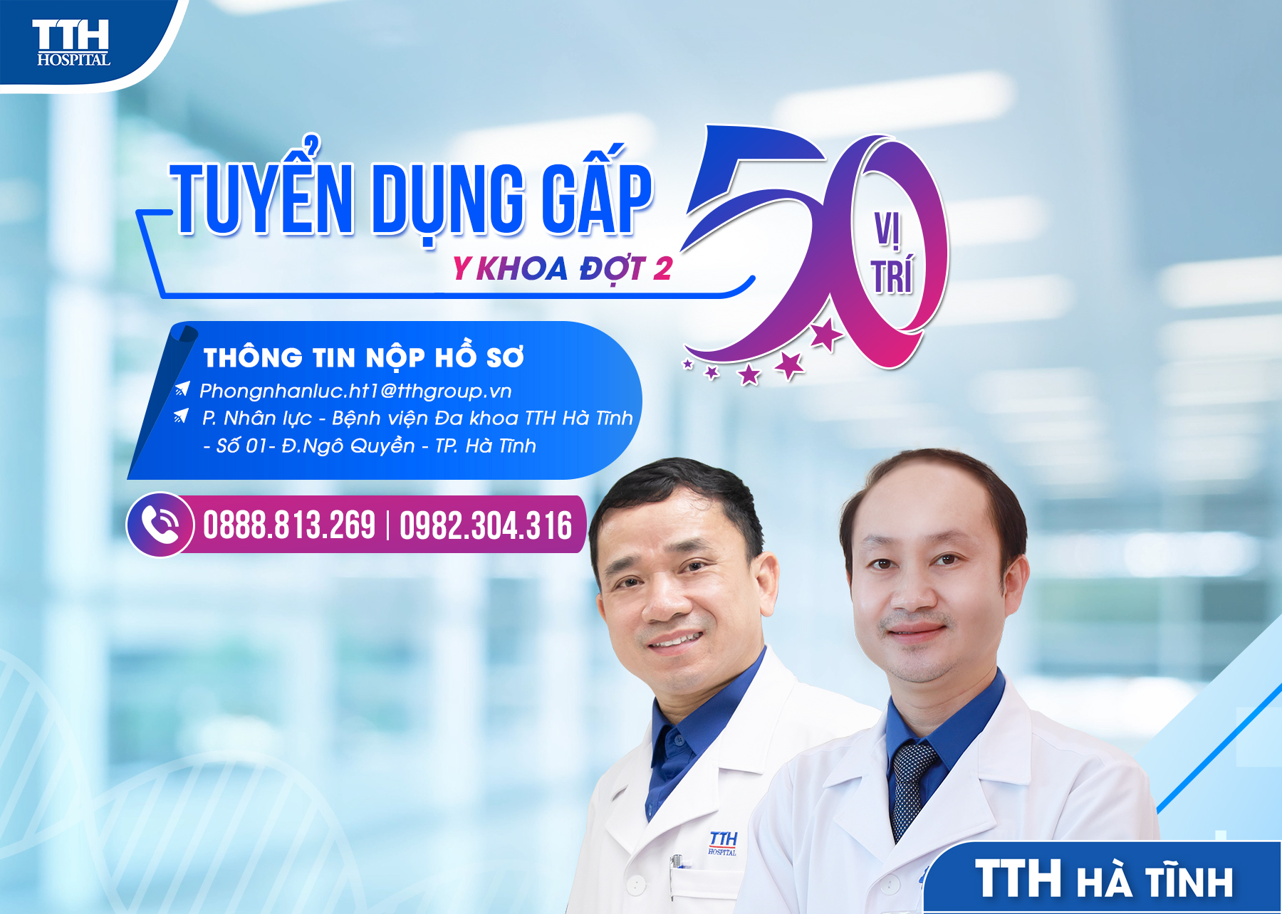 Bệnh viện Đa khoa TTH Hà Tĩnh là bệnh viên Đa khoa được xây dựng theo mô hình tiêu chuẩn quốc tế hiện đại với hệ thống cơ sở vật chất, trang thiết bị và chất lượng dịch vụ tương đương các bệnh viện tiên tiến trên thế giới. Hiện nay, do nhu cầu mở rộng hoạt động khám chữa bệnh của Bệnh viện, chúng tôi cần tuyển bổ sung nhân sự vào vị trí sau