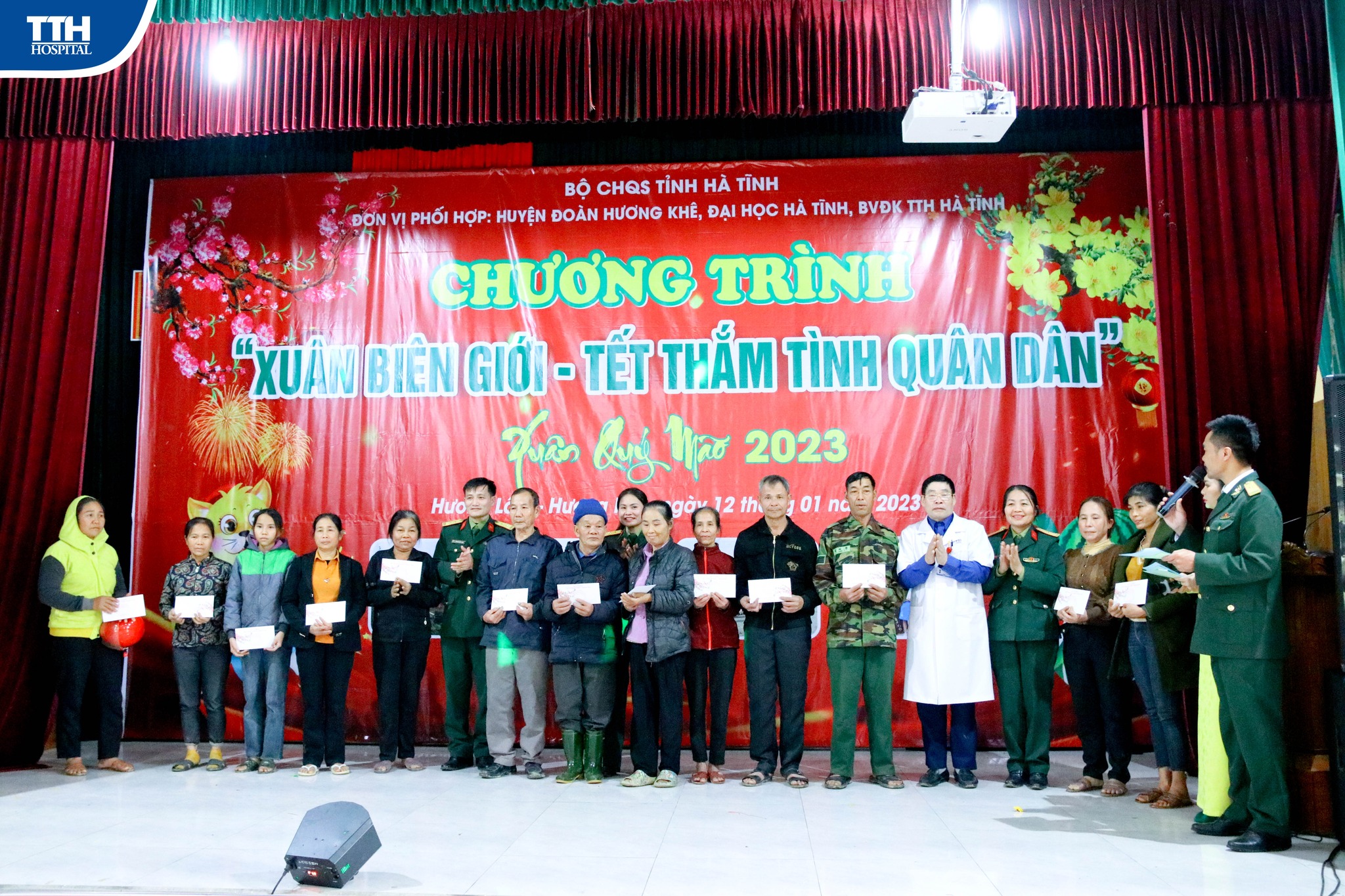 Chiều ngày 12/01/2023, Bệnh viện Đa khoa TTH Hà Tĩnh phối hợp với Bộ Chỉ huy Quân sự tỉnh Hà Tĩnh, Huyện đoàn Hương Khê và Trường Đại học Hà Tĩnh tổ chức chương trình “Xuân biên giới, Tết ấm tình quân dân" tại xã Hương Lâm (huyện Hương Khê).